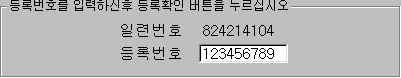 ÄÄÆÄÀÏÇØ¼.. µî·Ï¹øÈ£¸¦ ÀÔ·ÂÇϸé.. ÀϷùøÈ£°¡.. ȸ鿡 Message Box ·Î Ç¥½Ã µÇ°ÚÁ®?? |
